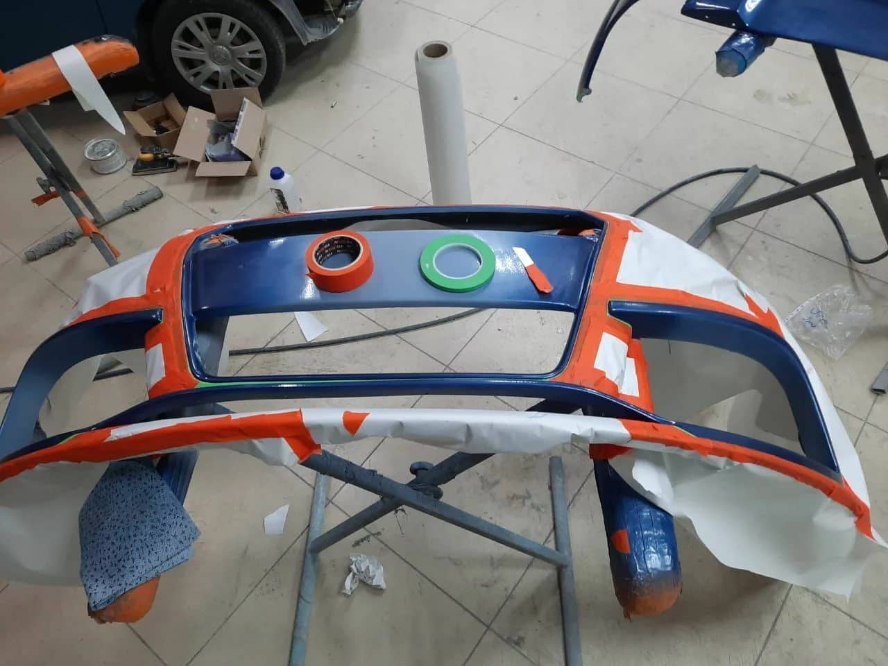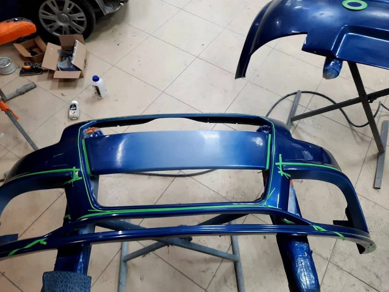 Обеспечим точное попадание в цвет: используем компьютерный подбор, доведём до идеала при помощи колориста, сделаем тестовое напыление на отдельной детали и проверим результат при свете дневной и вечерней ламп.