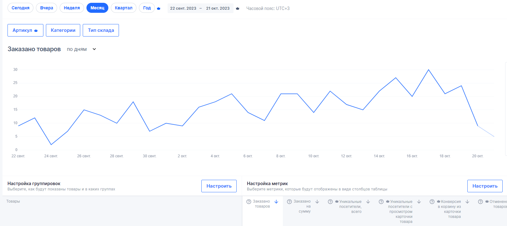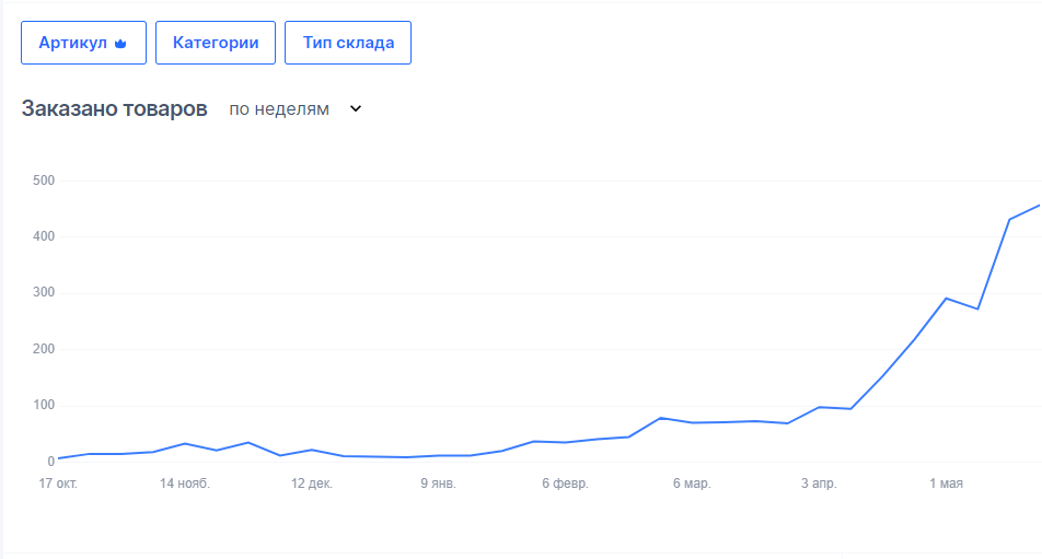 - как результат получаем оборот более 590 тыс рублей, при том, что товар имеет летнюю сезонность